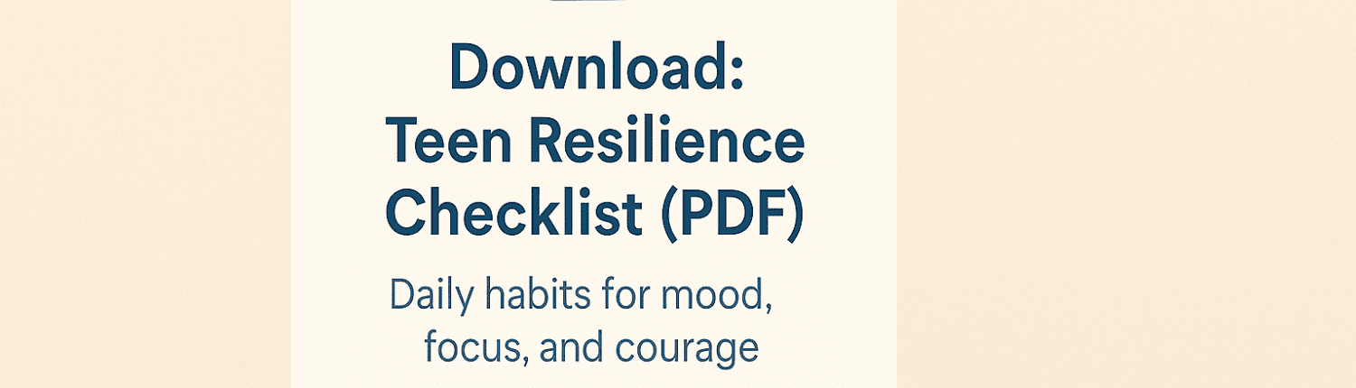 • Download: Teen Resilience Checklist (PDF)—daily habits for mood, focus, and courage.